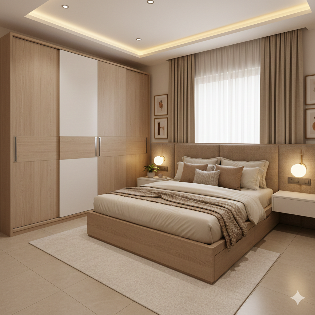 Yes, a basic to mid-range 3BHK interior is possible within ₹8 lakhs by choosing laminates, modular furniture, and limited false ceiling work.
